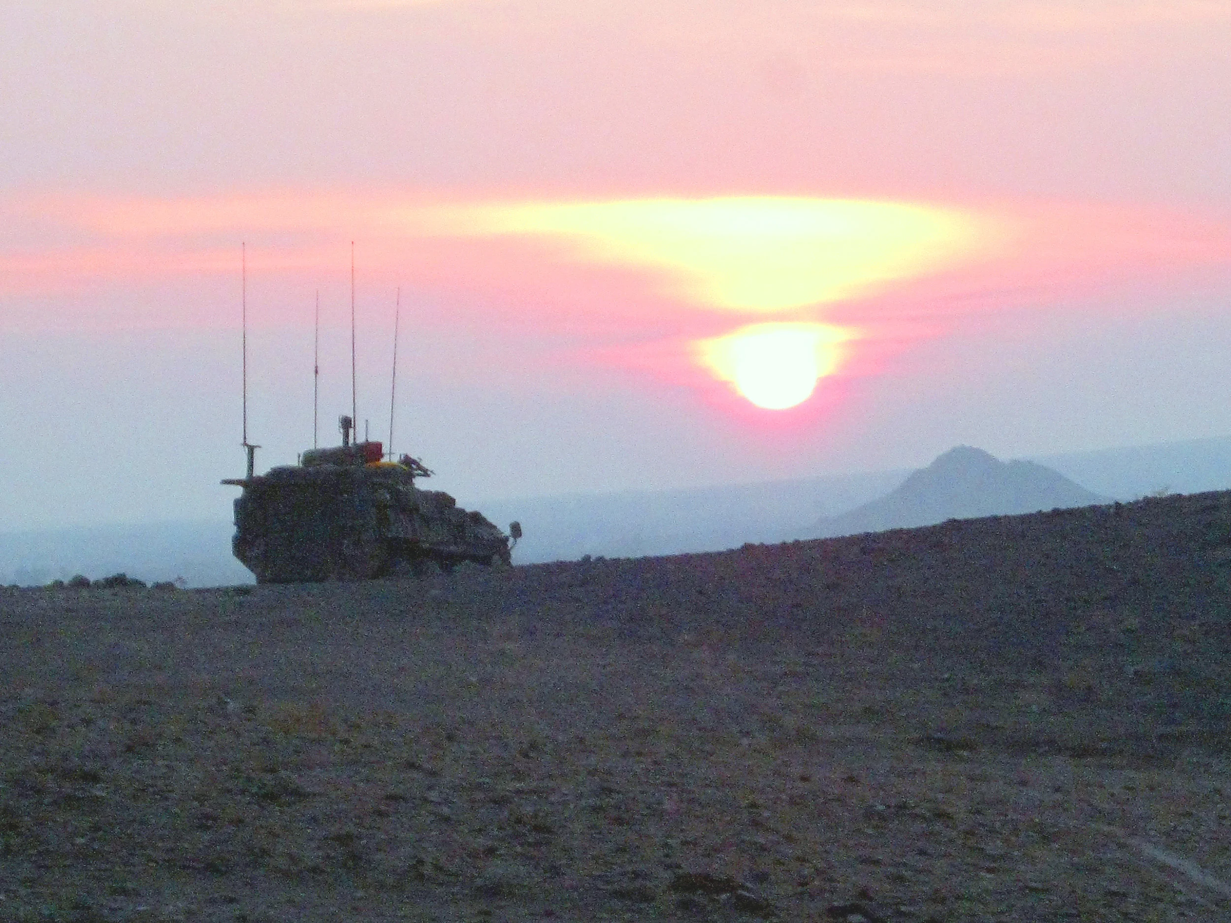 Upon arrival we are flown on a helicopter to where we will be replacing the current armoured reconnaissance squadron, the 12e Régiment blindé du Canada. My squadron, B Squadron of the Royal Canadian Dragoons, is to be situated between three locations in a hostile area sandwiched between a desert to the south and a river valley to the north, impassable at most locations.