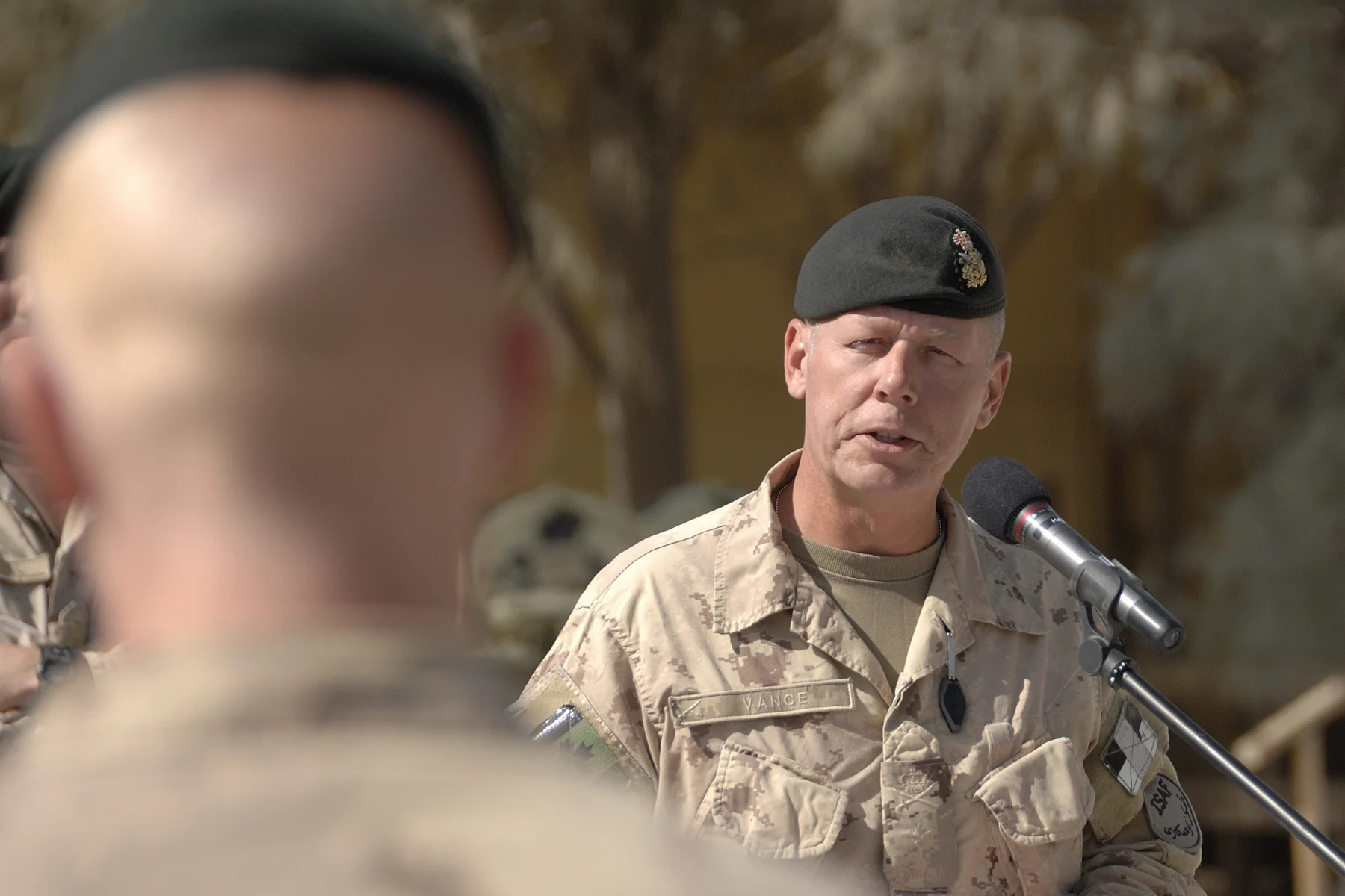 LGen Jonathan Vance, then a Brigadier General, delivers a speech while serving as Kandahar operation commander during Canada's participation in the Afghanistan conflict. (DND)