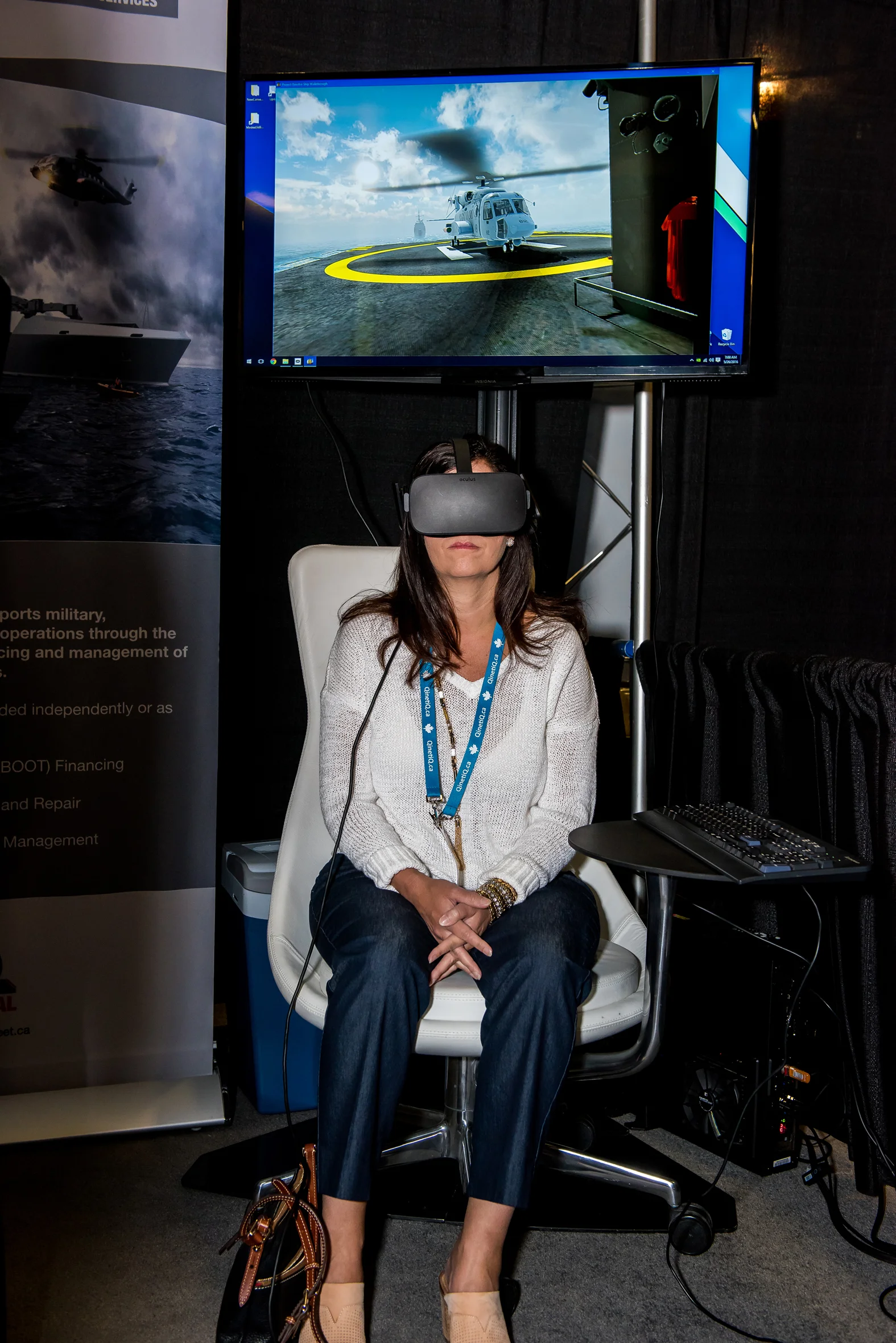 Attendees at CANSEC always appreciate something which they can try out for themselves, and the Rockwell Collins virtual reality (VR) distant training tool (pictured) proved to be very popular with the crowd. Based on the Oculus Rift goggles, the new technology allows students to train for many tasks, such as avionics trouble shooting.