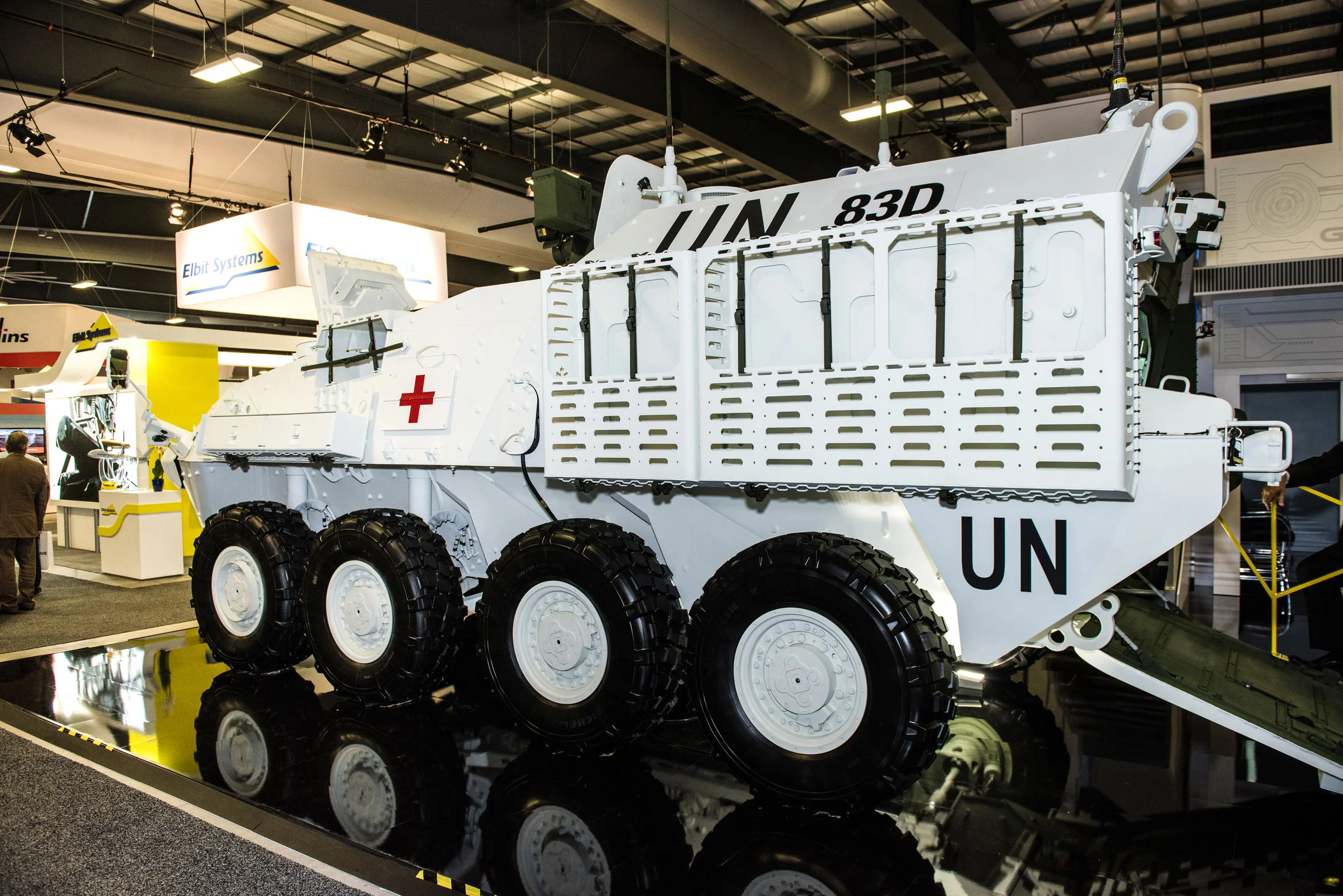 To demonstrate the versatility of its basic Light Armoured Vehicle – Combat Support Vehicle (LAV–CSV), General DynamicsLand Systems – Canada had a display vehicle featuring two different paint schemes. The right half was combat green, while the left side of the LAV-CSV was painted in white with a red cross denoting an ambulance variant. The CSV is based on the success of the LAV 6.0 platform, which is currently in production to provide the Canadian Army with 550 modern armoured personnel carriers.