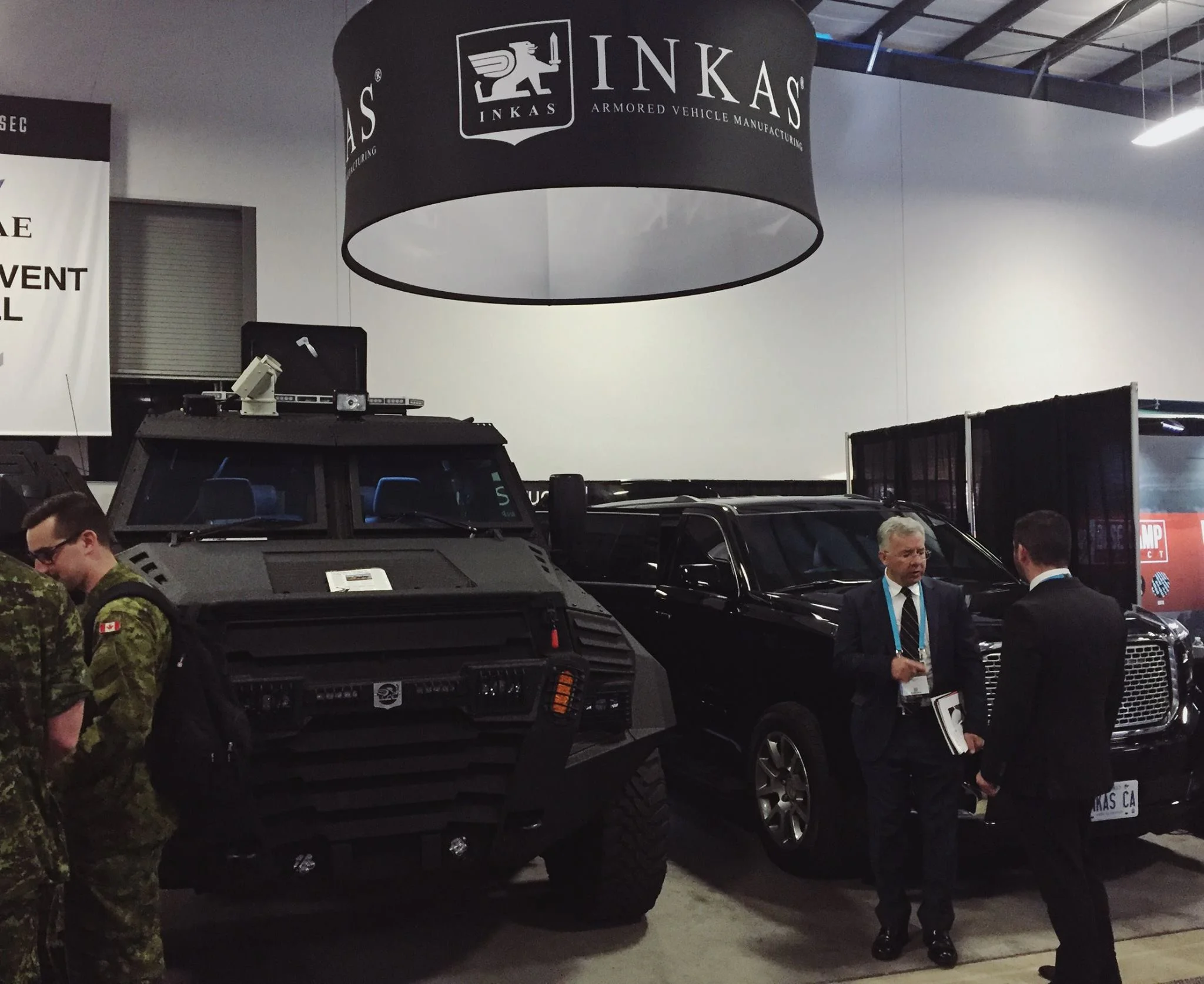 Always a crowd favourite are the INKAS armoured cars which have tended to be heavily protected but still luxurious VIP transportation vehicles. With the new Sentry armoured personnel carriers, INKAS is looking to attract military forces, SWAT teams and other law enforcement agencies. One unique feature of the Sentry is a removable vehicle-mounted barrier intended for crowd control.
