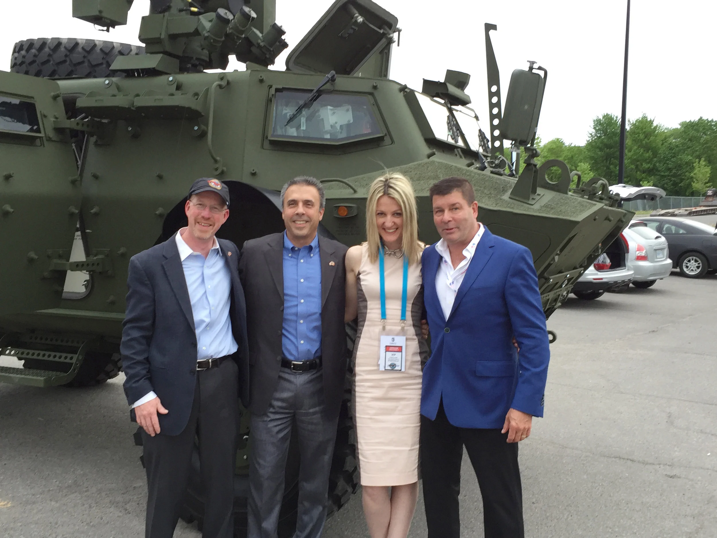 Now that the Tactical Armoured Patrol Vehicle (pictured) has passed the rigorous Canadian Forces’ reliability, availability, maintainability and durability (RAMD) qualification process, Textron Systems is ramping up production of the wheeled vehicle. With the first of the new TAPVs set to enter service later this summer, attendees were keen to view the Canadian Army’s latest acquisition. The same level of interest was generated by the TAPV when Textron executives brought it to the Commando Hockey Challenge 5 post-game tailgate party — and parked it outside the tent. A very impressive piece of kit.