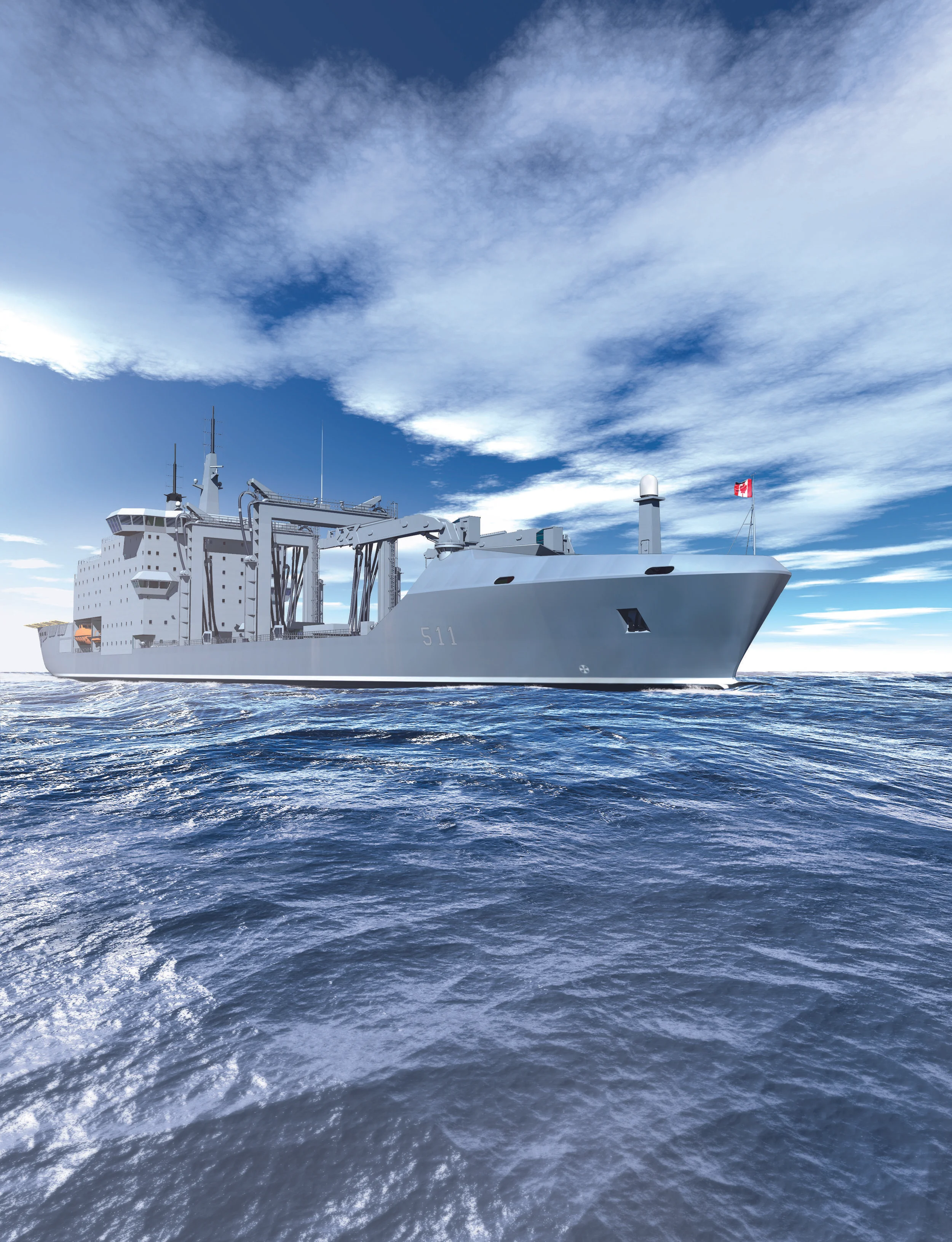 Federal Fleet Services has also pointed out that the interim AOR will provide the Canadian Armed Forces with the ability to respond to humanitarian assistance and disaster relief (HADR) missions. The company noted the ship will have specific HADR capabilities including: a humanitarian processing area for triage and care of evacuees/survivors; a large medical facility for up to 60 patients in two separate wards; emergency accommodation for up to 350 people (in addition to the ship’s current 150-person capacity); a ship-shore airlift capability via the two embarked CH-148 Cyclone helicopters; a significant small craft capability that includes up to eight boats with quick launch and recovery capabilities; the ability to sustain the delivery over 400 tons/day of fresh water and up to 7,000 tons of fuel oil; as well as the transportation and self-sufficient loading and unloading of light vehicles, sea containers and general cargo that are essential for HADR missions.