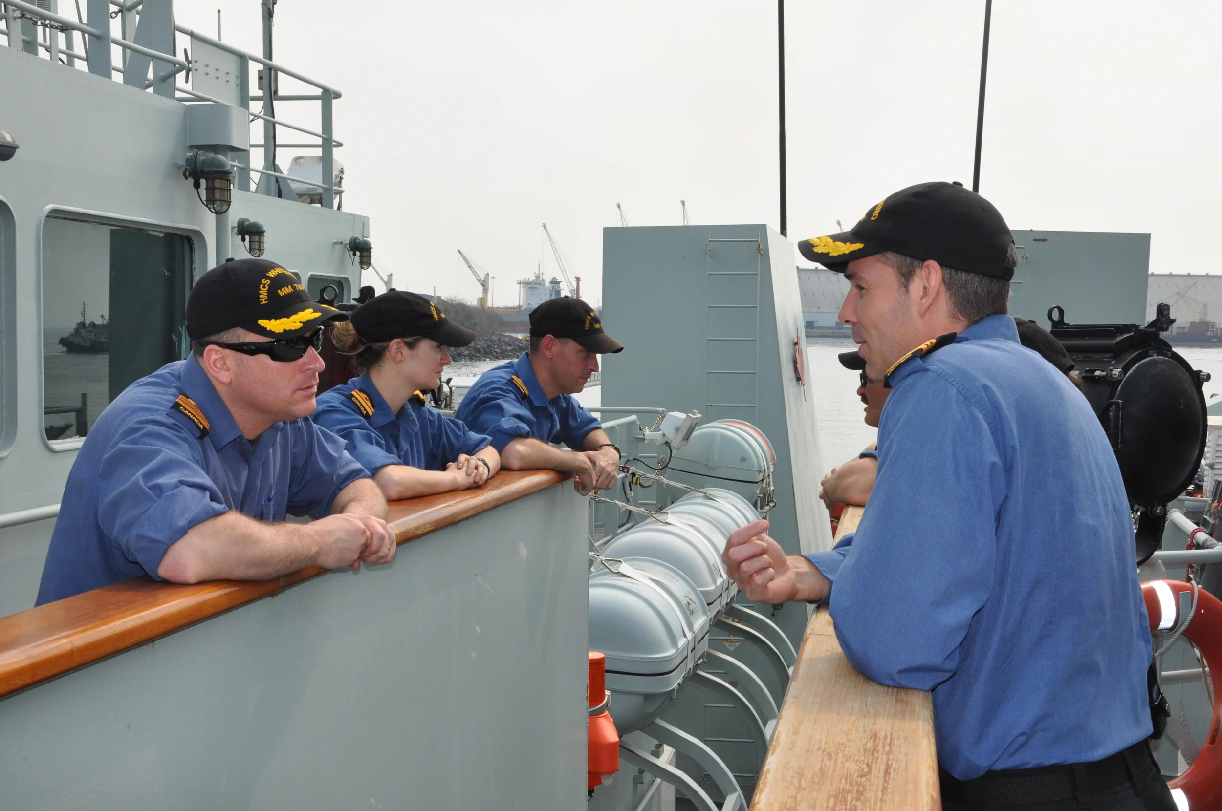 LCdr Rochon: We actually carry one of the U.S. Coast Guard boarding parties. It’s called a law-enforcement detachment, and they do disembark from our ship.