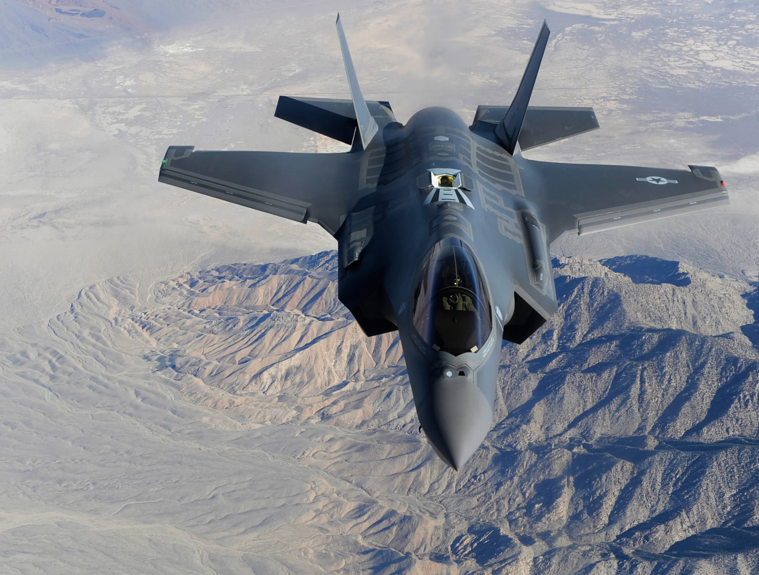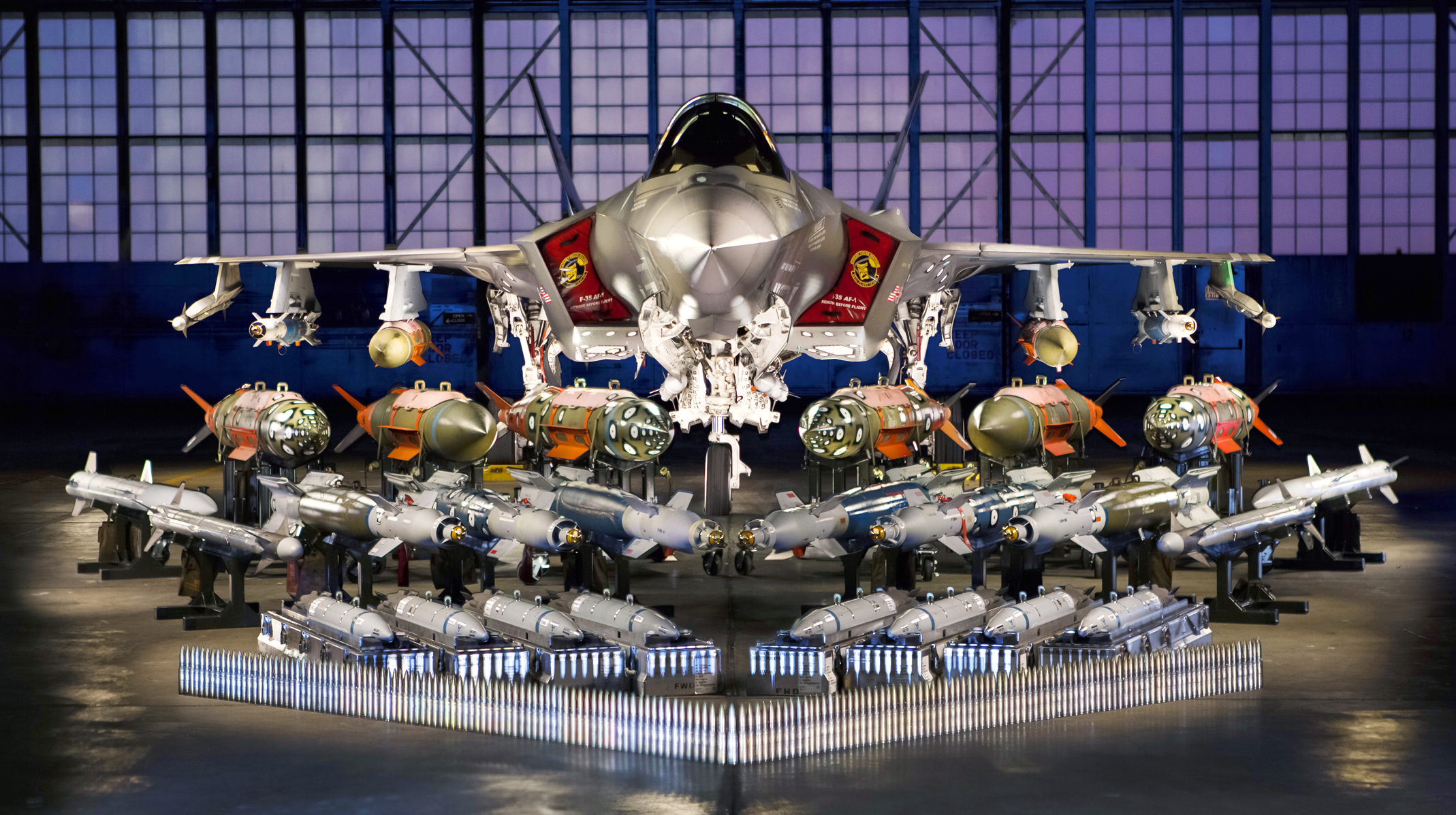 An F-35A at Edwards AFB, California, is pictured with its F-35 Systems Development and Demonstration Weapons Suite the aircraft is designed to carry. The F-35 can carry more than 3,500 pounds of ordinance in Low Observable (stealth) mode and over 18,000 pounds uncontested. (Lockheed Martin)