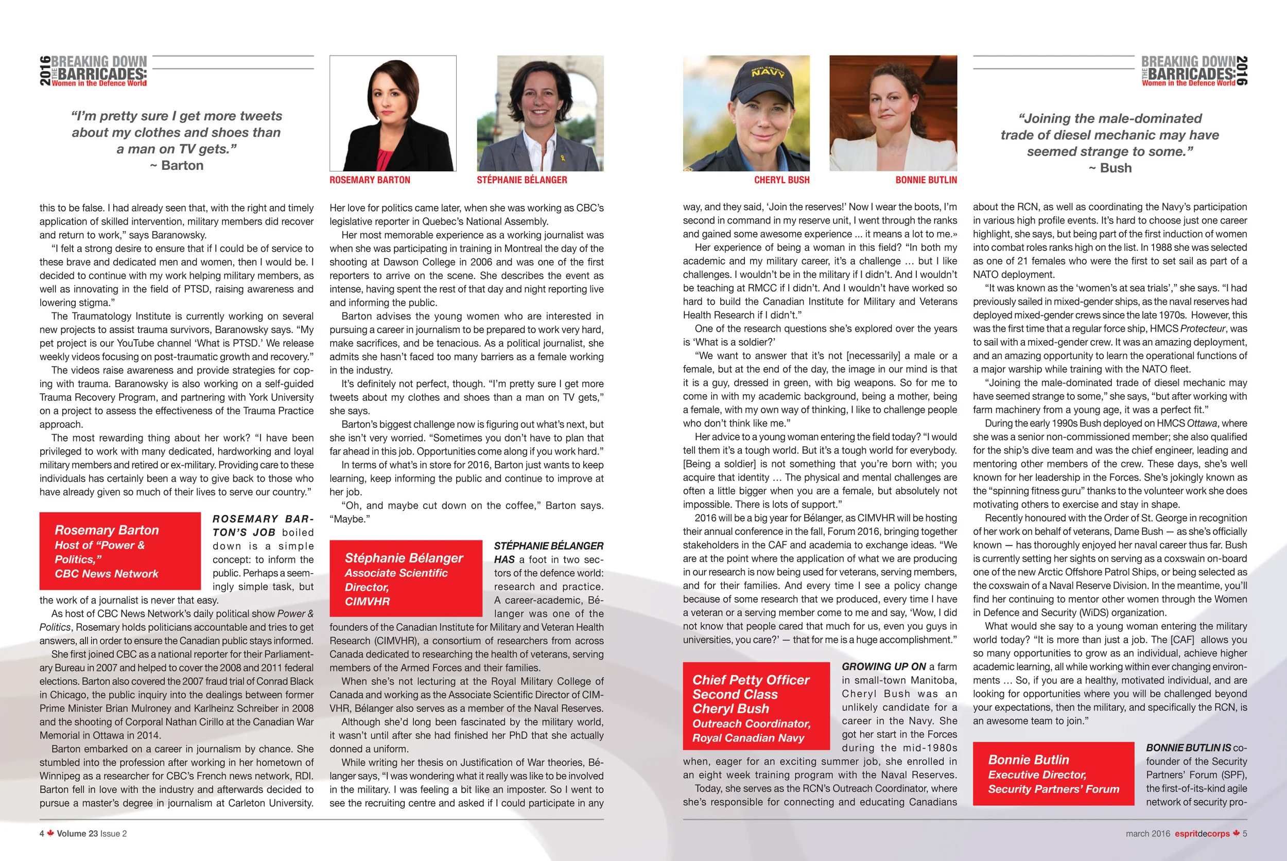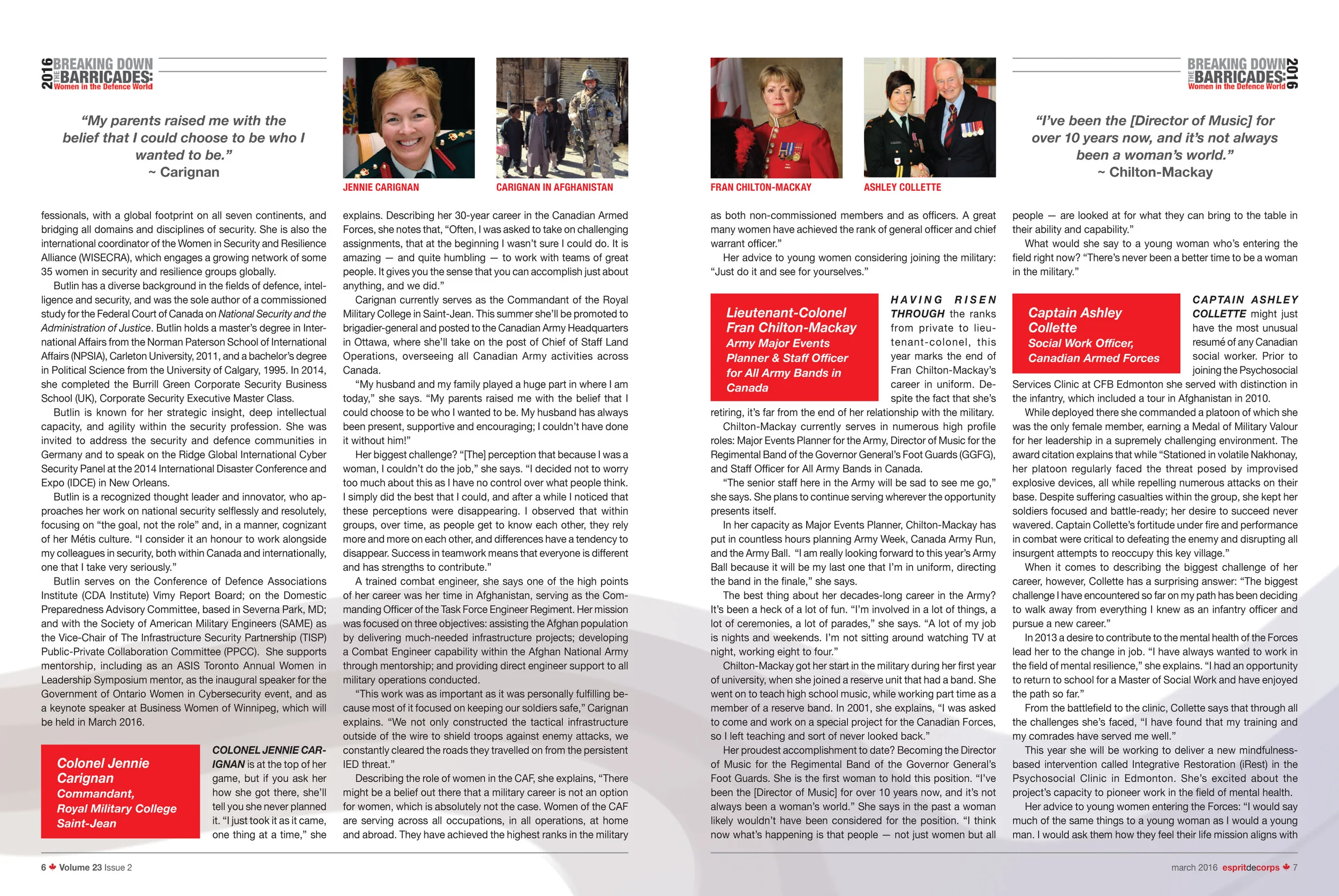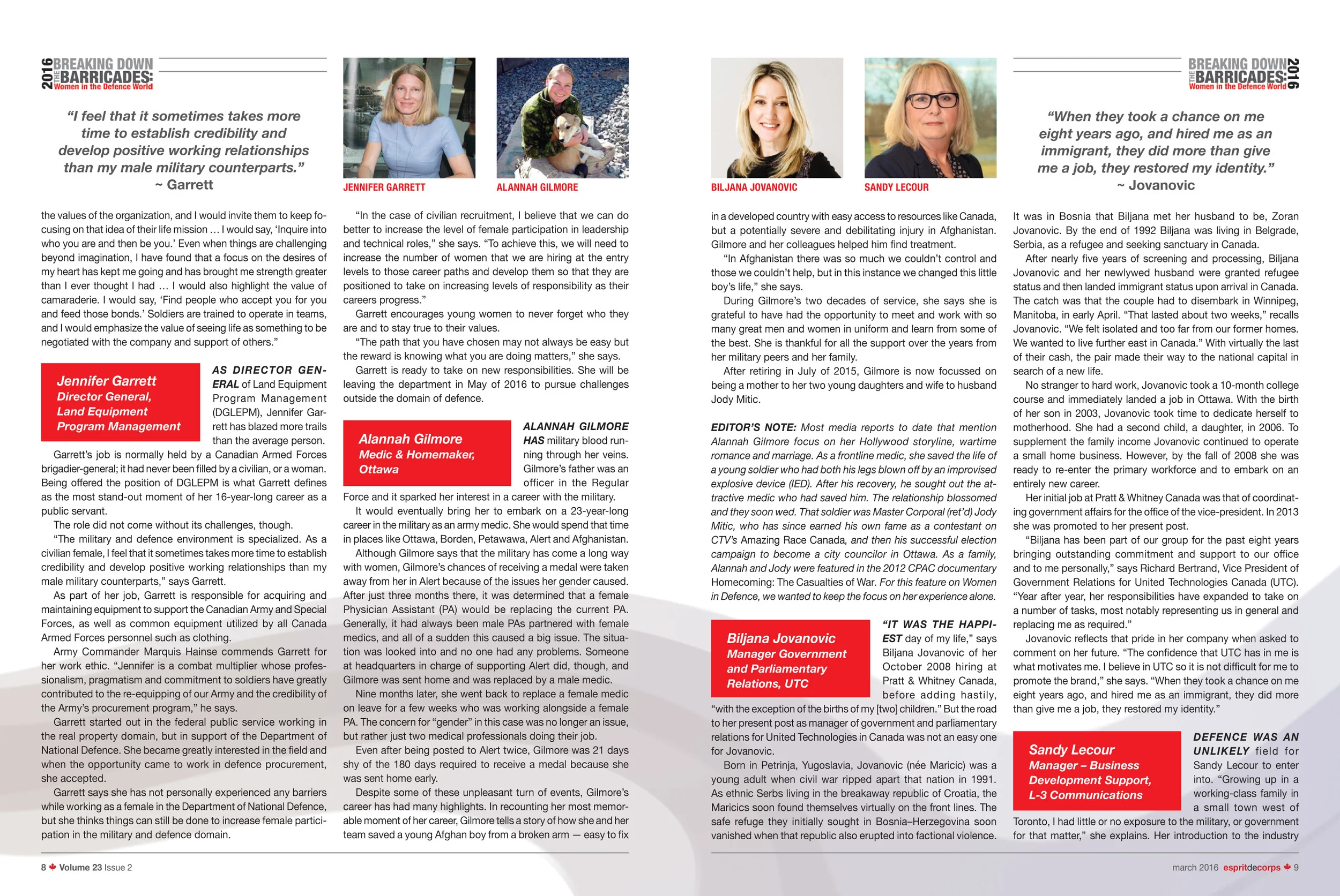 March 2, 2016 Social Media Manager March 2, 2016 Social Media Manager BREAKING DOWN THE BARRICADES 2016 | WOMEN IN THE DEFENCE WORLDBy Scott Taylor, Evelyn Brotherston & Jasmine Law(from the March 2016 issue) View fullsize View fullsize View fullsize View fullsize View fullsize View fullsize View fullsize View fullsize Women in Defence 2017: http://espritdecorps.ca/women-in-defence/breaking-down-the-barricades-women-in-the-defence-worldWomen In Defence 2015: http://espritdecorps.ca/womenindefence/2015/10/28/breaking-down-the-barricades-women-in-defence-2015